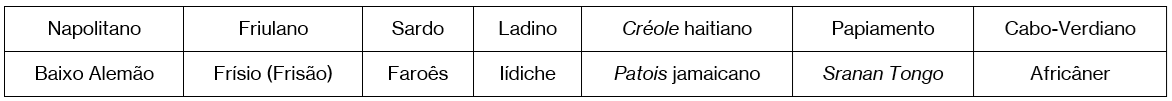 Observação: se considerarmos que alguns desses idiomas se encontram em decadência, sufocados pelas línguas majoritárias de seus países, teremos, na verdade, sete idiomas românicos (português, galego, espanhol, catalão, francês, italiano, romeno) e sete germânicos (inglês, holandês, alemão, dinamarquês, sueco, norueguês e islandês).