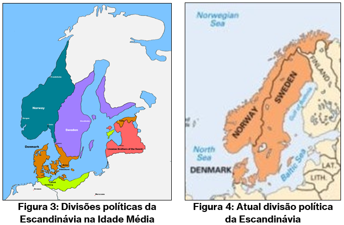 A península escandinava também resulta da união histórica de diversos reinos. Até o século XIV, havia os reinos da Suécia, Noruega e Dinamarca (esta, se considerarmos que, embora geograficamente separada pelo mar, faz parte do conjunto histórico chamado Escandinávia). A Noruega perdeu sua independência para a Dinamarca em 1380 (comparem esta data com 1580, data da perda da independência de Portugal para a Espanha); a partir de então, a Escandinávia foi formada por dois Estados: Suécia e Dinamarca-Noruega.